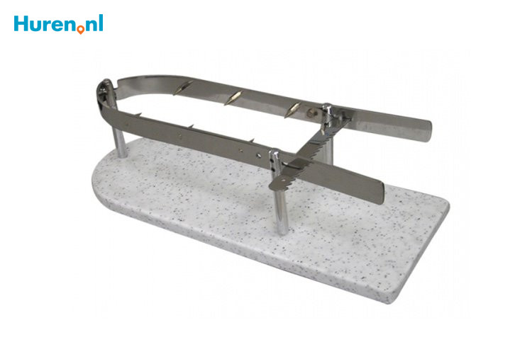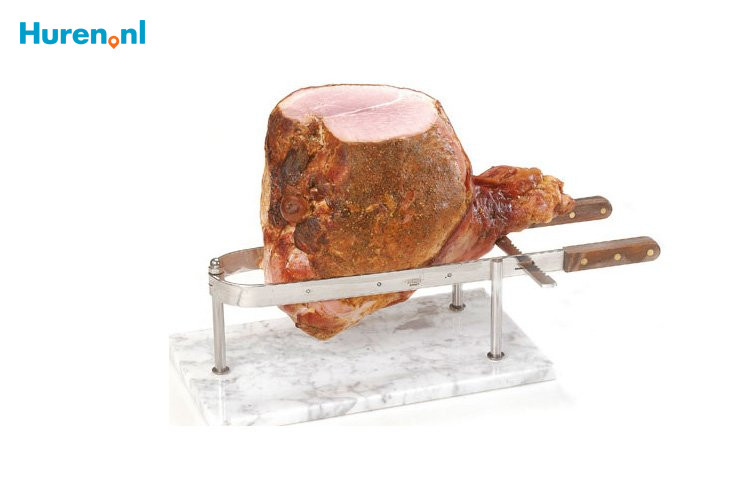 Een hamklem, ook bekend als hamsnijplank, is vaak gemaakt van metaal en geschikt voor verschillende formaten ham. De klemmen zijn namelijk verstelbaar. Heb je een paar plakjes ham gesneden, dan kun je de ham herschikken zodat deze goed geklemd blijft zitten. Het onderstel van de hamklem kan van marmer zijn, maar ook van steen of van hout. Koop een lekkere Spaanse, Italiaanse of gewoon een Nederlandse ham en smullen maar! Op deze pagina vind je de verhuurbedrijven van hamklemmen in de door jou gekozen omgeving.