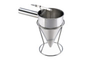 Met een portioneertrechter, ook wel saustrechter genoemd, kun je in een handomdraai een prachtig bord opmaken. Door de controleknop bij het handvat kun je precies de gewenste hoeveelheid bepalen en de sauzen perfect door elkaar heen laten lopen. De portioneertrechter wordt bij de meeste bedrijven geleverd met twee verschillende spuitmondjes en een stabiele houder. Bekijk en vergelijk de verhuurbedrijven van een portioneertrechter via huren.nl!