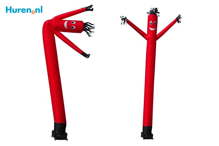 Een skydancer heeft meestal armen en een hoofd en kan zowel 1-benig als 2-benig zijn. De lengte, het figuur en de kleur van de skydancer kan verschillen. Voor alle skydancers is stroomvoorziening nodig, dus huur eventueel een haspel mocht er geen stroompunt aanwezig zijn op je locatie. De blower en de hoes waar de dancer in kan, wordt meestal bijgeleverd. Sluit de skydancer aan op de blower en klaar is kees. Zo simpel is het. Huur je een skydancer, hou dan rekening met eventuele borg-, transport- en schoonmaakkosten.