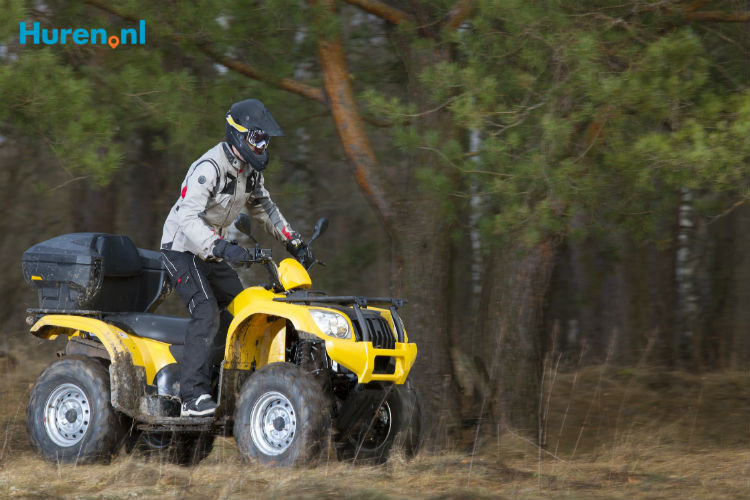 Een quad is een motorfiets of brommer met vier wielen. Je hebt twee soorten quads die je kunt huren: de utilityquad en de sportquad. De utilityquad heeft grote banden en wordt onder andere gebruikt om te werken op het land. De meeste verhuurbedrijven verhuren een ander type quad: de sportquad. Deze heeft een snelle motor, kan snel accelereren en kan hoge snelheden behalen. De sportquad is speciaal ontworpen om snel en wendbaar over een zanderig en/of modderig terrein te rijden. Deze quad is dus ideaal voor pleziertochtjes voor een bedrijfsuitje of vrijgezellenfeest. De cilinderinhoud van quads varieert van 150 tot 400 cc.