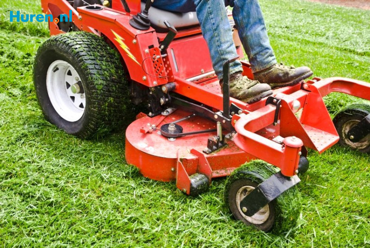 Voor het maaien van een groot grasveld huur je een zitmaaier