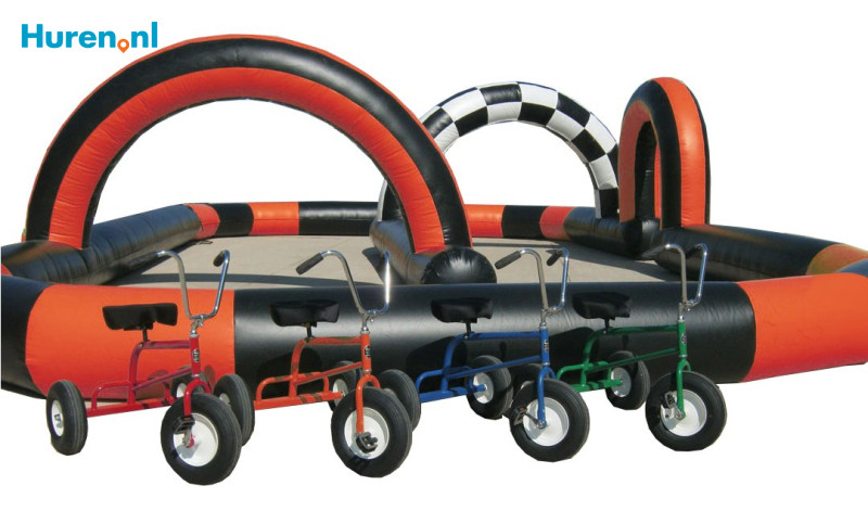 Ben je op zoek naar een verhuurbedrijf waar je skelters kunt huren voor een evenement of feestje? Dan is het ook heel leuk en praktisch om een skelterparcours te huren. Zo’n parcours is een opblaasbare boarding waarin kinderen met skelters naar hartenlust kunnen skelteren. Je kunt deze skelterbaan huren en zowel buiten als binnen gebruiken. De baan bestaat meestal uit opblaasbare randen en een aantal bogen, die als start en finish fungeren. De meeste verhuurbedrijven verhuren het skelterparcours inclusief een aantal skelters. Vanwege de grootte van de baan mag er maar een beperkt aantal skelters tegelijk de baan op. Een skelterparcours kun je ook huren en gebruiken als trikeparcours of als racebaan voor gekke fietsen etc
