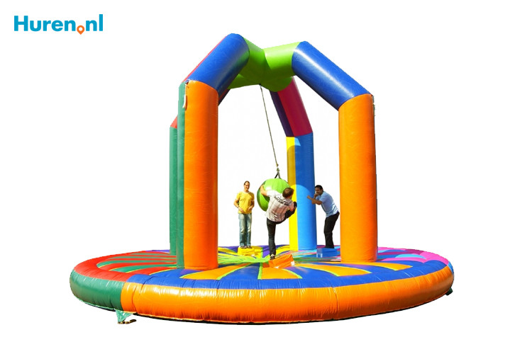 Vaak kun je ervoor kiezen om de slingerbal zelf op te bouwen en af te breken. Houd er wel rekening mee dat het opblaasbare spel erg zwaar kan zijn (140-300 kilogram) en dat je minstens twee personen nodig hebt om op te bouwen. Je kunt er in de meeste gevallen ook voor kiezen om levering en op- en afbouw door de verhuurder te laten doen, uiteraard tegen een meerprijs. De slingerbal is meestal in een ronde vorm met een diameter van 8-10 meter. De hoogte varieert van 5 tot 8 meter.