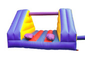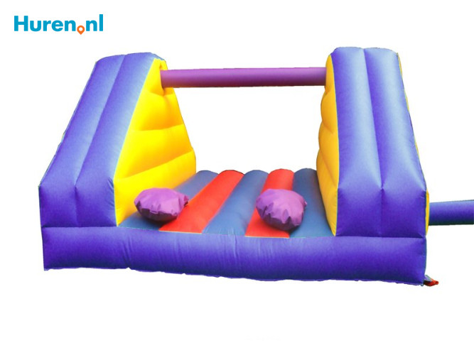 Zakslaan is niet zomaar een kussengevecht. Het is een spel waarbij je je tegenstander met een zak van een balk af te moet meppen, terwijll je probeert op een balk te blijven zitten of staan. Gelukkig speelt het spel zich af boven een groot springkussen of een zwembad, dus mocht je vallen dan is er nog geen man overboord. Organiseer je een zeskamp, feestje of familiedag? Huur dan het spel zakslaan en meppen maar! Spring je liever op een springkussen zonder dat er wordt gemept? Dan kun je natuurlijk ook gewoon een springkussen huren. Op deze pagina vind je de verhuurbedrijven van het spel zakslaan in de door jou gewenste omgeving.